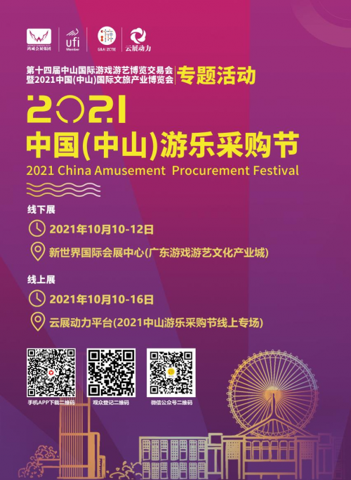 “第十四届中山国际游戏游艺博览交易会暨2021中国(中山)国际文旅产业博览会”(简称2021中山游博会&中山旅博会)将于2021年10月10-12日在广东·中山博览/广东游戏游艺文化产业城(新世界国际会展中心)举办。作为2021下半年首场行业专业博览会,本届博览会预计展览面积60000平方米,600家企业参展,集中展示最新的游戏游艺产品、文旅创新产品和产业前沿技术。展会同期举办多场专业论坛及活动,为行业提供广阔的交流平台。 为了让更多的企业、采购商参与到中山游博会这场行业盛会,减少疫情常态化对行业经贸活动所造成的影响,本届博览会将举办专题活动——“2021中国(中山)游乐采购节”,采用线上线下展览同步举办的方式,线下新增新世界国际会展中心(广东游戏游艺文化产业城)会场进行展览展示,邀请大玩家、城市英雄、永旺幻想、神采飞扬、汤姆熊、卡通尼、小飞侠、万达宝贝王、奥飞娱乐、探奇乐园、哈尼鹿梦幻王国、华录乐园、考拉大冒险、泰迪熊、新城控股(多奇妙)、大海豚乐园、哇哇哇游乐城、反斗星、天空之城、南京风云投资、大白鲨、大黄鸭、蜜芽母婴、开心河马、偶予电玩、嘉文梦幻王国、慢车道、蓝鲸乐园、环游嘉年华、苏宁红孩子、乐翻天、快乐街区、星际传奇、奇乐儿、乐妙屋、活力嘉年华、融创文旅、旅道集团、印尼JTP乐园集团、华侨城文旅小镇、熊出没主题公园、横琴银河、汇首文旅、悦龙湾旅游、长隆集团、方乘欢乐世界、蓝光文旅、健之旅旅游集团、海南农垦旅游集团等300+知名主题乐园、室内乐园、电玩城、娱乐中心、大型乐园景点、景区的专业采购单位,提供免费洽谈展位和5000间免费酒店住宿名额,采购洽谈更便捷! 本次活动立足广东游戏游艺文化产业城(新世界国际会展中心),由组委会联合相关企业举办线下3天、线上7天的无缝接优惠活动,面向全球游乐设备企业及专业采购商,借助中山游博会及云展动力平台,实现信息传播、采购商组织;通过线上、线下组织专业买家进行采购,赋能企业形成获客、留存、转化、客户管理的数字营销闭环,提高企业“云”拓客能力,帮助企业低成本接入数字贸易赛道,开创全球数字化、精准化获客新渠道,为广大客商创造更多机遇!